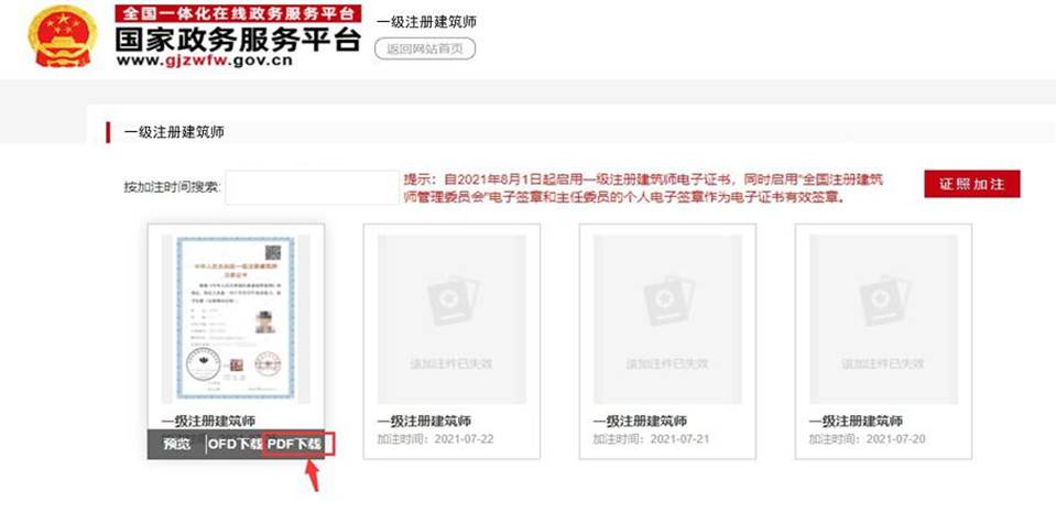 (三)注冊信息發生變更的,需登錄政務平臺重新下載。電子證書與紙質證書信息不一致的,以電子證書為準,一級注冊建造師可根據需要隨時下載電子證書。